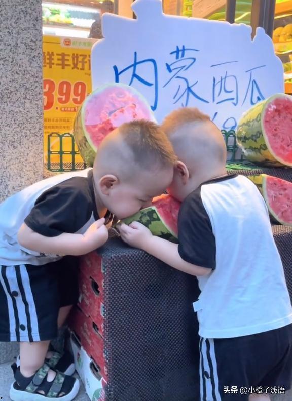 在吃瓜的过程中,双胞胎兄弟还不忘互相调侃、打闹。他们你争我抢,互相喂食,那场面,真是让人感受到了兄弟之间的深厚感情。